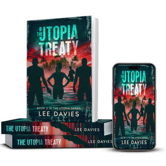 With that success under my belt, I contracted them again to design the second book in the series, The Utopia Treaty. This time, I wanted to keep the same base layout but with subtle changes in imagery and colour. I did end up exceeding the 5 included stock images and purchased 2 extras for around $10 – money well spent, in my opinion. I also received social media banners and a release image and a mockup, which looked fantastic. The total cost for both books came in at just over £65